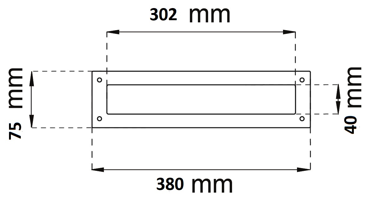 Messingpostkasse uten bakluke. Dimensjonsforklaring (mm): A - Ytre mål, B - Brevskilt, C - Dørutløpsmål. EU-standard 137724 anbefaler en åpningskraft på maksimalt 8 Newton (N). Krever maksimalt 6-7,5 N i åpningskraft. Bakluke 16 kan brukes med.