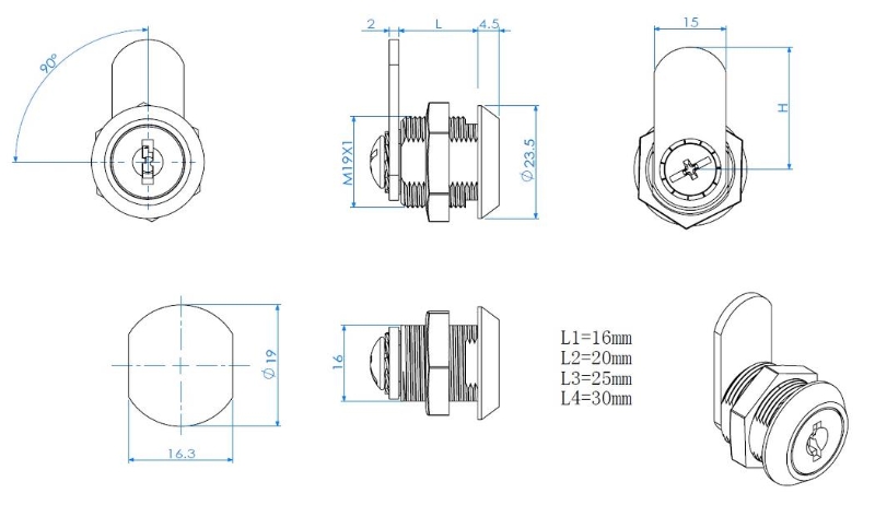 Små enkle møbellåser som kan monteres i både tre- og ståldører, vær oppmerksom på at selve gjengen er lang nok til at du får skruen på, se tegning på produktet.